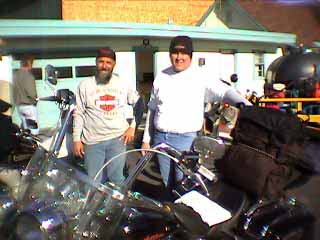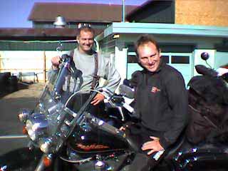 Without really noticing to start with, we suddenly realised everyone else there was an American Indian, which was a bit of a shock as we had hardly come into contact with any Indians at all on the road so far. We checked afterwards and the Stony Indian reservation is nearby; it certainly made us realise how much we take for granted without thinking about it. However, it was a another real shock when we went in to pay and found that we no longer had the Mastercard -instant panic, and Adam realised he had left in back in Calgary at the last shop. Of course the mobile phone did not have a signal now we really needed it and by the time we'd got to the payphone and found the right change it had gone 5pm and there was a recorded message saying they'd be open on Monday at 9! Not good news, and we considered all the options. We did not have other suitable cards, we only had a limited amount of extra cash for emergency use and to mail more cash from the UK would take another couple of days. So all things considered we decided to ride back to the shop and see if they'd perhaps left us a contact number to phone. The ride back was not relaxing and once we arrived, no note. However the Tattoo shop next door was still open, Wendy & Shaun suggested phoning the security company; the security helpdesk said yes they had two contact numbers but could not disclose them of course. However they did try them on our behalf but there was no reply, so they said they'd retry later. Wendy then tried the Police but they simply said cancel the cards, which we did not want to do as we would not be able to get another quickly. Shaun put a call in to a mate who lived close to the owner and that was all the options we could think of. Shaun is also a Harley rider, and they are more people who just love taking off on the bike and getting away, North America certainly is the place for it! After an hour we retried the security company, and this time they managed to get hold of Andrew the owner, who kindly said he'd pop down and unlock for us. He arrived about 20 minutes later, and after another brief panic once inside when we could not find it, the card reappeared and panic over.