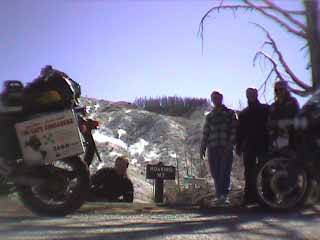 The Highway out of the city runs right past the Olympic Park where the Winter Games were held a few years back and you cannot believe the size of those Ski Jumping launch pads, they must be mad to go down those. Mind you, put a few boulders on and it would have been about the same as some of the roads in Bolivia! As we rode over the hills skirting the city we could seen the Rockies across the plain, now a lot closer, and yes, quite a bit of snow on top and the wind was again quite cold coming down from the Northwest. We made good time across to the mountains with the bikes feeling great on their new tyres. Just as we came into the foothills John went onto reserve; he has had a problem switching over since Lima when the fuel tap spigot snapped off, so he now has to pull over and grope under the tank to find reserve. Still, not a problem and we pulled into the next service station, the Hiniki Gas Bar at Morley.