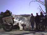 We decided to track back to see it, but just then a posse of Quads turned up for fuel, so we asked them why there are so many around. It seems that you can ride the trails over all the mountains around here and the people we spoke to had hired them for the week and they'd had a great time. We also noticed that each Quad had a coolbox mounted on the back and sure enough, once they had fuelled, it was over to the Ice machine to top up the beer coolers, how civilised can you get! We rode back round to Butch's place, which was a small wooden hut, substantially built but in poor repair, literally right by the road, but not marked or cared for, we just pulled up and walked in. It is still OK but needs renovation, apparently he'd built it here because you can see virtually the whole valley from the doorway and what a view. It was strange to think that we'd seen his end at Tupiza in Bolivia all those weeks ago and here we were at his house, so many miles away from there. It must have been a huge trip in those days and what a contrast between the two places. Yet another Quad shot by as we were moving off, we now realised that the dusty tracks either side of the road were just that, Quad tracks! There are so many its ridiculous!