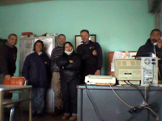 Friday 14.7.00 Garayalde Police Station. We woke up after a good nights sleep, the camping kit came in really useful, we made tea for breakfast, and compared notes. On hindsight, we had been very lucky not to get seriously injured yesterday; when John came off, as he was getting up he saw Paul go down, and it was obvious to him it was a bad one. He decided to leave his bike to "run" up the ice to Paul, and he and the pickup people got the bike off Paul. He then looked back to his bike which is when he noticed that the truck drivers who had stopped to pick his bike for him were falling all over the place themselves, which afterwards was funny, but not at the time. On our trip through the dark to Garayalde, Paul said that one truck pulling past us had his trailer sideways going down the road towards Adam who was leading, and it only straightened at the last moment, as the driver kept the power on and got just enough grip to pull it back into line. As we said, the graders had moved the snow off the road, but this made banks 2' high each side which meant no escape for us once we were on the road. We all said that seeing the lights of Garayalde in the distance, and riding for an hour before getting there and finding that yes, it really was somewhere to stop was quite a moment. If it had not been for that, we'd have been in very serious trouble as the road conditions were the worst any of us have ever experienced anywhere without a doubt, let alone being on heavy bikes with trucks and buses oncoming and behind. The worry of knowing how long the road was, with no settlements at all for 300km, and so whether help and shelter was available at "the lights" was quite a concern, and Paul said afterwards that once he pulled up behind Adam's bike at the fuel station, that was as far as he was going on that bike! All in all we considered ourselves lucky to be in one piece albeit with Paul's leg in big trouble and Johns Touratech looking very mangled, just held on with wire for now. Anna the Police Dispatcher and the guys said that we would have to move out of the Cell, and shift the bikes out of the garage as they had the Commissioner coming up from Commodoro Rivadavia. Nurse Gloria very kindly offered us a room at their house, just round the corner, which is the only First Aid Station for 200k in any direction. It turned out that she & PC Daniel are married, and the house was full of their family, including Daniels sister Maria and her children. They made us really welcome, and the eldest, Ivan used his computer Babelfish translator to help us converse which was really good. The previous night we'd had 3 phrasebooks and a dictionary on the go at one time! We were overwhelmed by their hospitality, they showed us the gun collection and videos of them hunting deer, some of which Gloria & Maria made into wonderful small pasties called "embanada" for dinner. She and Daniel kept getting calls for accidents out on the roads and rushing off in the Ambulance, they seemed to have worked all through the previous night too. After dinner she redressed Paul's leg, and again offered an anti-inflammatory injection again, which he still was scared of, and declined! We had more long conversations and the communication on all sides improved greatly, and Castellan was making much more sense to us having someone to talk to for a long period. Gloria said that Rio Gallegos was very involved in the Falklands War, and this is possibly why people were not very forthcoming sometimes, once they knew we were English. We were again very touched to realise that the kids had moved out of their room to fit us in, and we settled down for a good nights sleep, soothed by the boiler rumbling away, and wondering what the weather was going to do, as they said it was forecast to stay cold and snowing for the next 2 weeks, and indeed it had been snowing and windy most of the afternoon. So we not optimistic about a quick thaw, and Gloria still wanted Paul's leg X-Rayed, but that meant a 200k trip to Trelew, and there was not a vehicle spare to go in. By the way, it took the Commissioner over 10 hours to get there from Commodoro Rivadavia in a 4WD!