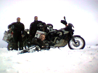 Thursday 13.7.00 Comodora Rivadavia to Trelew After finally getting some sleep when the mad pickups went home, we had the big breakfast as promised by Enrico at the Austral Hotel, and got on the road by 11. Running out of town up the highway was a great ride, and we quickly climbed up onto the top, for the straight run down to Trelew. We had been stopped at a Police Checkpoint going out of town, and they said the road was icy with snow in patches, so on we went. We made good time for the first 85 miles, then we began to hit the snow patches. Quickly the patches became continuous, and soon it was pretty dodgy. We had to keep moving, as to stop meant you could not get going again, but we were still climbing. It had to happen, and first John came off, then Paul, who was stuck under the bike, trapped by his leg. John was also stuck, and a truck driver stopped to help, and fell over himself trying to get to John. They both then rescued Paul, along with a couple in a pickup who stopped as well, meanwhile Adam had rolled on to the top of the hill, but there was a couple of trucks off the road there, and nowhere to stop, so he had to keep going for a while longer till he found a small patch of earth to stop on. John had crushed one Touratech pannier and broken the brackets off, and Paul had really hurt his leg, looking like his ligaments torn, so we got collected together and sorted out. The road graders arrived to pull the trucks out, and when they had done that offered us some tea, which was good. A driver gave us some spray on goo for more grip, which helped, and we decided to carry on to the next place, about 20 k. It was really bad, you could not change line, and nor could the trucks, so you had to keep going or they would have to stop too; looking in your mirrors seeing a truck behind on full lock still going straight on towards you was not nice, and we could not pull over because of the snow banks on either side. Not our most favourite experience. We got to the top, and were able to let the trucks roll on, and decided to take it really easy, and covered the next 15 miles in the dark, when we finally saw some lights. Afraid it was just another Pumping Station and unmanned, we were relieved to see a fuel station, so we stopped and asked for rooms. They did dinner but not rooms, but a Policeman there said we could stay in the cells over the road, an offer we quickly accepted. They also got a nurse to look at Paul's leg, which was really swollen, and John & Adam went back for the bikes, and the Chef at the Filling Station kindly knocked up takeaway Steak & Chips. By this time it was raining on the ice, and it was impossible to walk let alone ride on the packed snow. The Police guys went shooting off to another accident, we had passed 4 trucks off the road in the last 5 miles alone. Paul was very depressed at getting injured, and we will have to see how he is tomorrow, as he may need a trip to hospital to check it out, 100k away. So, an unexpected stop and a very welcome stay in the Garayalde Police Station (GPS S44.41.241/ W066.37.206) it looked like the word was right about the road being impassable to Buenos Aires, and apparently it is the same for the next 40k, we will see how we do tomorrow!